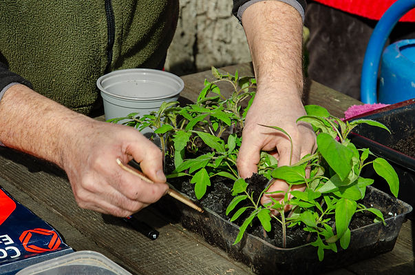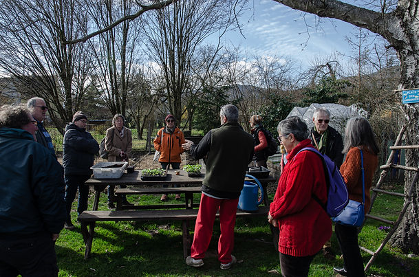 Nous faisons le tour du grand jardin où tous les petits plants en attente trouveront une place de choix le moment venu.